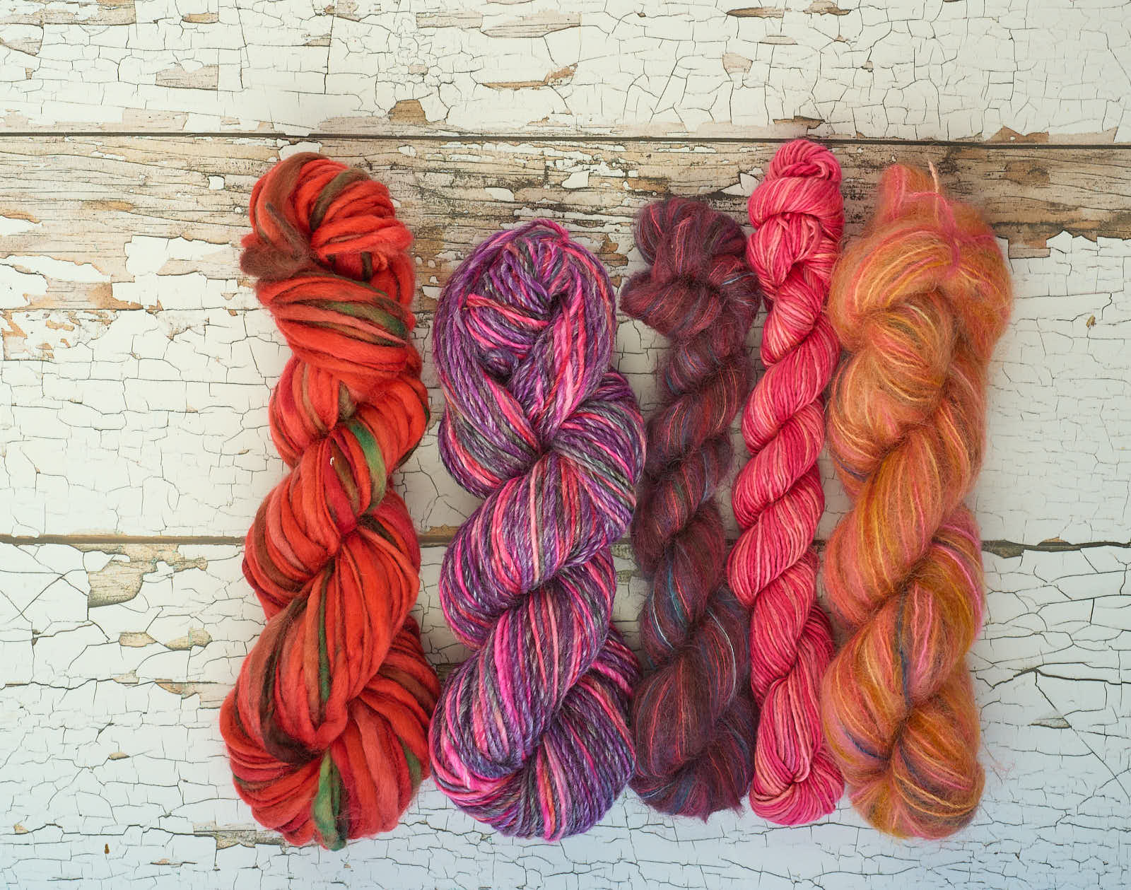 This stash pack includes around 300g of mixed yarns, neatly grouped into colour families — reds with reds, greens with greens, blues with blues. It’s definitely not a lucky dip: the photo shows the exact pack you’ll receive, so there are no surprises hiding in the box.